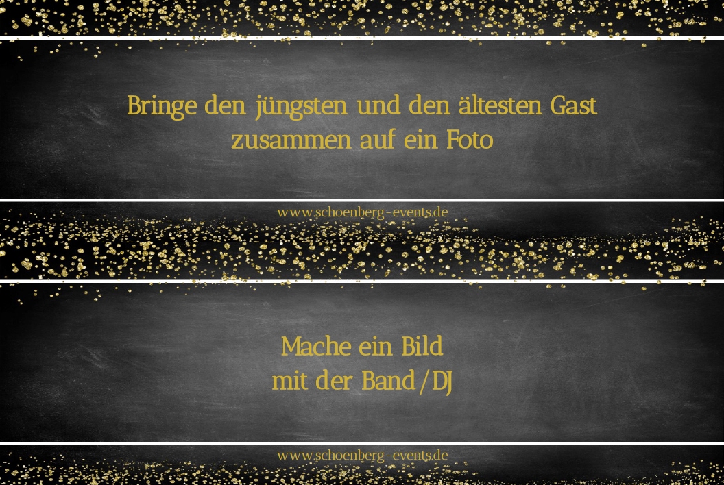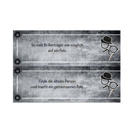 Sollten mehr als 80 Gäste anwesend sein, kann das Aufgabenpaket auf bis zu 200 verschiedene Aufgaben erweitert werden.